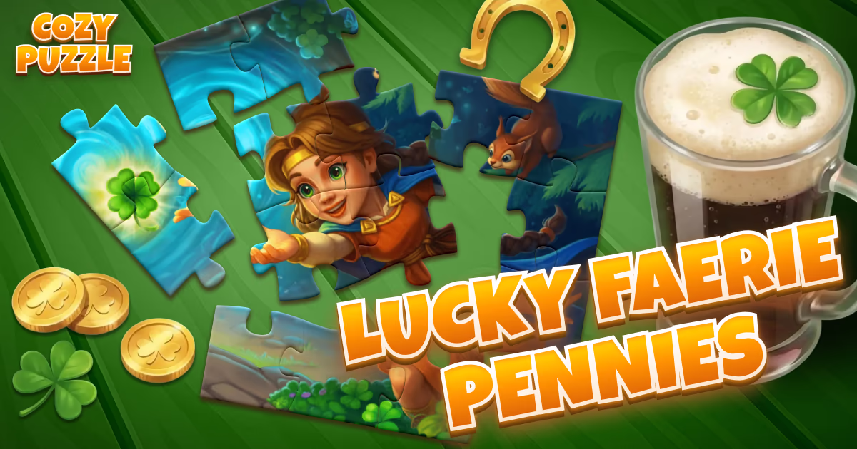 La magia ha vuelto a Cozy Puzzle — ¡esta vez brillando con chispas verde intenso de buena suerte! Lanzamos una colección de evento especial, Monedas de Hada de la Suerte, llena de duendes, hadas del bosque, suave luz de farol y un auténtico encanto festivo. ✨🍀